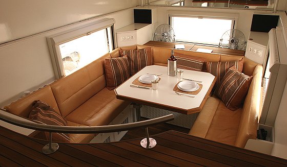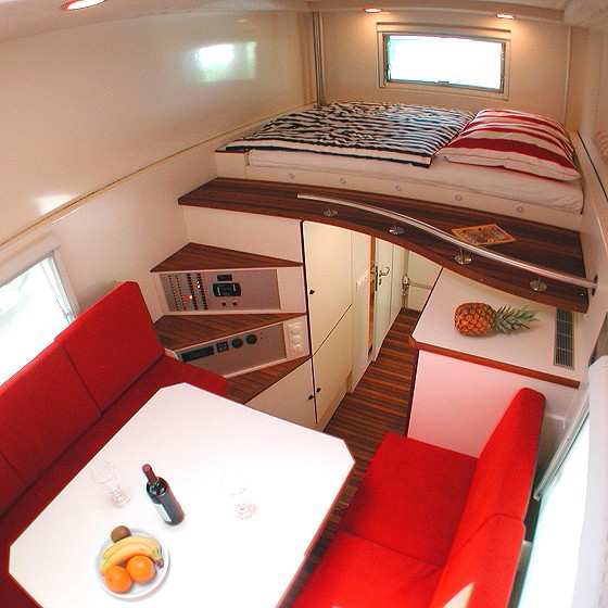 Салон оформляется по желанию клиента. В нем помещается стационарный душ, спальня, кухня, vip-кабинет. По желанию можно устанивить телефон, факс, интернет, телевизор с полным набором программ. Это поможет решать неотложные дела во время путешествия.